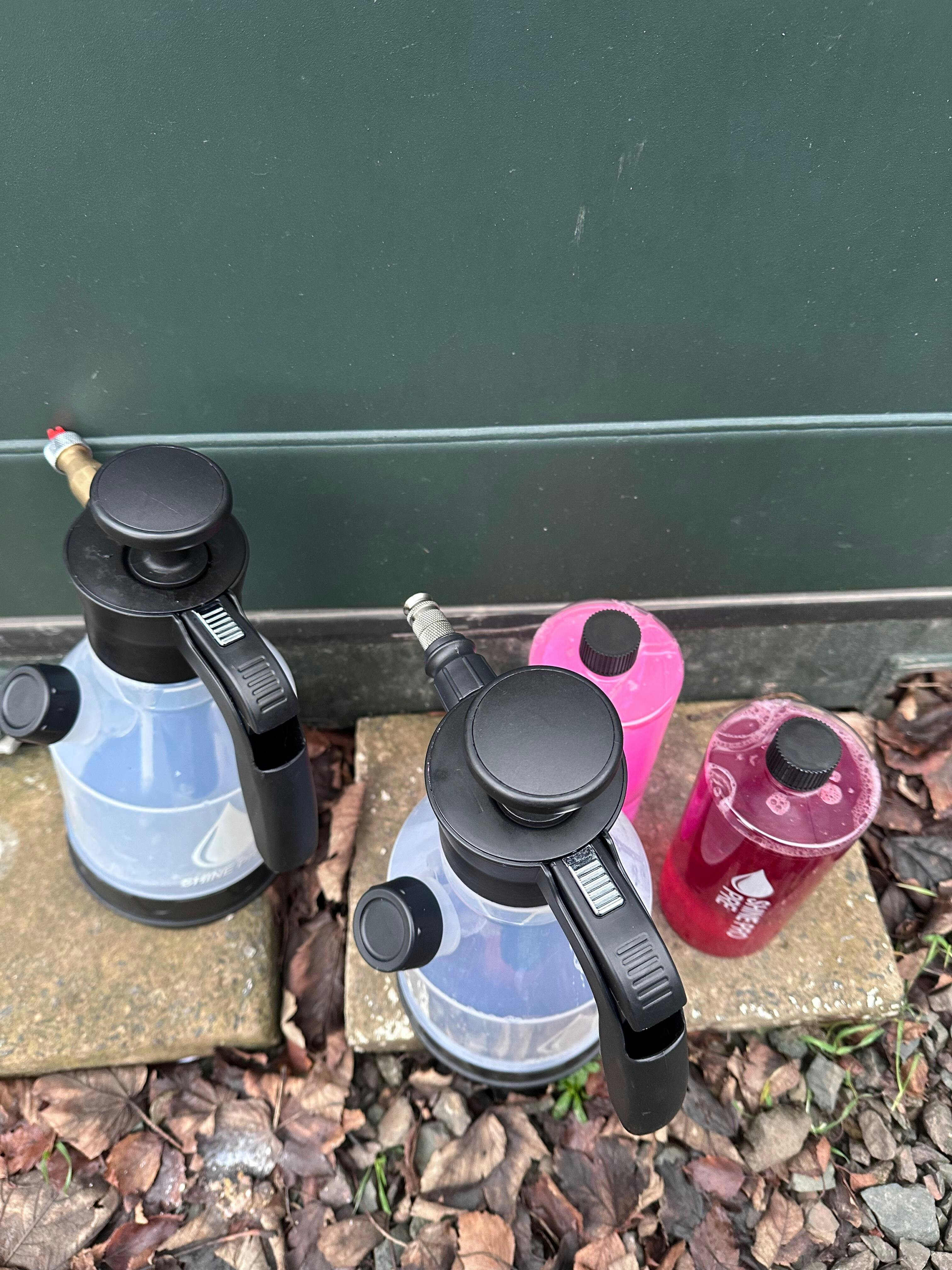 Fill the second 2L Cannon with ShinePro Snow Foam. Apply a thick, clinging layer of foam over the entire vehicle, allowing it to dwell for 2-3 minutes. Rinse thoroughly before proceeding with your contact wash.